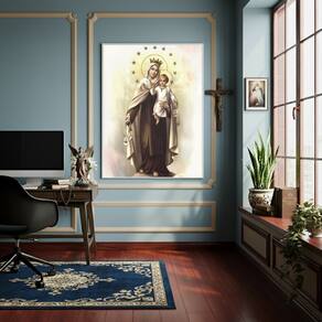 Quadro Nossa Senhora do Carmo -Protetora dos Perigos-70x50cm - Cor: Moldura Branca