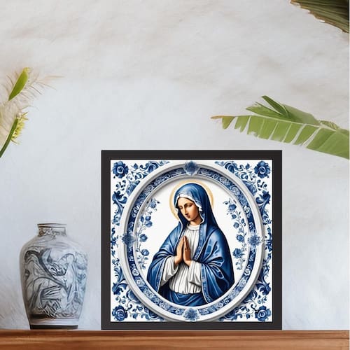 Quadro nossa senhora estilo azulejo português - 33x33cm Cor: moldura branca Informações do produto tire todas as suas dúvidas no descritivo abaixo: decoração para quarto, sala, cozinha, escritório, área gourmet e muito mais. Chega de paredes vazias medidas - cada peça tem 33x33cm. Material do papel - papel fotográfico brilhante de altíssima resolução acabamento - todos os quadros são acompanhados de uma película de acetato para proteção da imagem. - os quadros são embalados de forma segura com plástico bolha com camada dupla de acordo com o tamanho dos quadros. - de 3 meses. Meu quadro chegou. Como posso fixá-lo Você precisa apenas de um martelo e um prego, pois os quadros já vão acompanhados de penduradores. Esta é a forma mais indicada. Caso prefira, você pode utilizar uma fita dupla face neste caso, sugerimos de alta qualidade para evitar que descole e seu quadro caia . Como posso limpar meu quadro A limpeza é feita como um móvel comum da sua casa. Apenas um pano seco ou espanador são suficientes para tal Marca: Não Informado