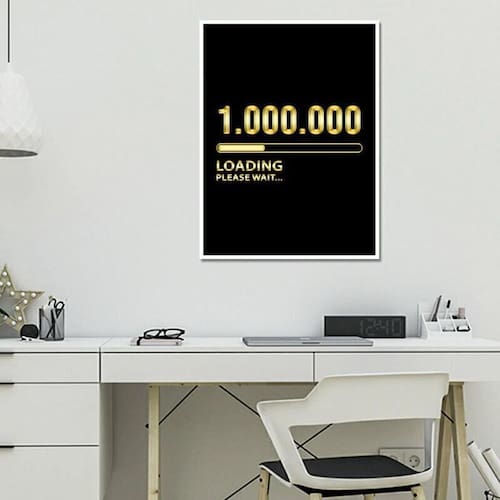 Quadro o primeiro milhão de reais 45x34cm Cor: moldura branca Informações do produto tire todas as suas dúvidas no descritivo abaixo: decoração para quarto, sala, cozinha, escritório, área gourmet e muito mais. Chega de paredes vazias. Medidas - cada peça tem 45x34cm a3 . Material do papel - papel fotográfico brilhante de altíssima resolução acabamento - todos os quadros são acompanhados de uma película de acetato para proteção da imagem. - os quadros são embalados de forma segura com plástico bolha com camada dupla de acordo com o tamanho dos quadros. - de 3 meses. Meu quadro chegou. Como posso fixá-lo Você precisa apenas de um martelo e um prego, pois os quadros já vão acompanhados de penduradores. Esta é a forma mais indicada. Caso prefira, você pode utilizar uma fita dupla face neste caso, sugerimos de alta qualidade para evitar que descole e seu quadro caia . Como posso limpar meu quadro A limpeza é feita como um móvel comum da sua casa. Apenas um pano seco ou espanador são suficientes para tal
