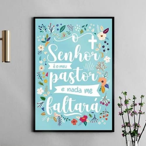 Quadro o senhor é meu pastor - floral 45x34cm - com vidro Cor: moldura branca Informações do produto tire todas as suas dúvidas no descritivo abaixo: decoração para quarto, sala, cozinha, escritório, área gourmet e muito mais. Chega de paredes vazias medidas - cada peça tem 45x34cm a3 . Material do papel - papel fotográfico brilhante de altíssima resolução acabamento - todos os quadros são acompanhados de vidro para proteção da imagem. - moldura em madeira maciça na cor preta ou branca conforme produto escolhido e pendurador . - os quadros são embalados de forma segura com plástico bolha com camada dupla de acordo com o tamanho dos quadros. Garantia - garantia de 3 meses. Meu quadro chegou. Como posso fixá-lo Você precisa apenas de um martelo e um prego, pois os quadros já vão acompanhados de penduradores. Esta é a forma mais indicada. Como posso limpar meu quadro A limpeza é feita como um móvel comum da sua casa. Apenas um pano seco ou espanador são suficientes para tal