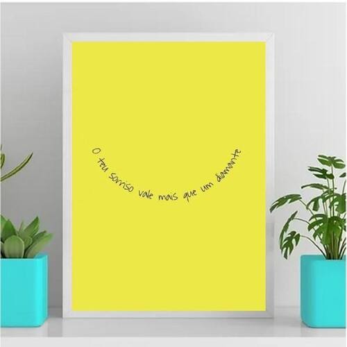 Quadro o teu sorriso vale mais que diamante 24x18cm - com vidro Moldura: madeira branca