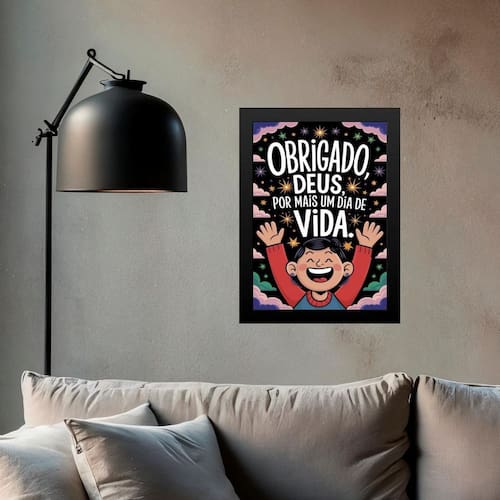 Quadro obrigado deus pela vida 33x24cm Cor: moldura preta Informações do produto tire todas as suas dúvidas no descritivo abaixo: decoração para quarto, sala, cozinha, escritório, área gourmet e muito mais. Chega de paredes vazias medidas - cada peça tem 33x24cm a4 . Material do papel - papel fotográfico brilhante de altíssima resolução acabamento - todos os quadros são acompanhados de uma película de acetato para proteção da imagem. - os quadros são embalados de forma segura com plástico bolha com camada dupla de acordo com o tamanho dos quadros. - de 3 meses. Meu quadro chegou. Como posso fixá-lo Você precisa apenas de um martelo e um prego, pois os quadros já vão acompanhados de penduradores. Esta é a forma mais indicada. Caso prefira, você pode utilizar uma fita dupla face neste caso, sugerimos de alta qualidade para evitar que descole e seu quadro caia . Como posso limpar meu quadro A limpeza é feita como um móvel comum da sua casa. Apenas um pano seco ou espanador são suficientes para tal Marca: Não Informado