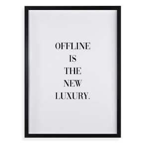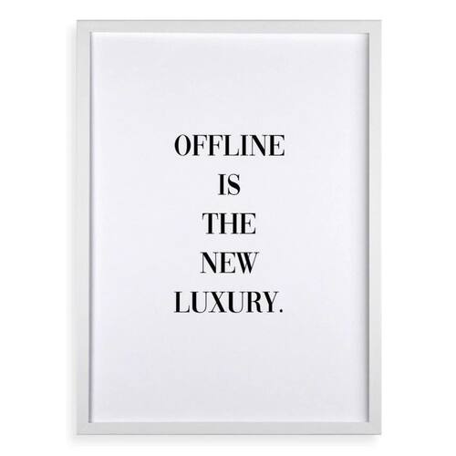 Quadro offline is the new luxury 33x24cm Cor: moldura branca Informações do produto tire todas as suas dúvidas no descritivo abaixo: decoração para quarto, sala, cozinha, escritório, área gourmet e muito mais. Chega de paredes vazias medidas - cada peça tem 33x24cm a4 . Material do papel - papel fotográfico brilhante de altíssima resolução acabamento - todos os quadros são acompanhados de uma película de acetato para proteção da imagem. - os quadros são embalados de forma segura com plástico bolha com camada dupla de acordo com o tamanho dos quadros. - de 3 meses. Meu quadro chegou. Como posso fixá-lo Você precisa apenas de um martelo e um prego, pois os quadros já vão acompanhados de penduradores. Esta é a forma mais indicada. Caso prefira, você pode utilizar uma fita dupla face neste caso, sugerimos de alta qualidade para evitar que descole e seu quadro caia . Como posso limpar meu quadro A limpeza é feita como um móvel comum da sua casa. Apenas um pano seco ou espanador são suficientes para tal