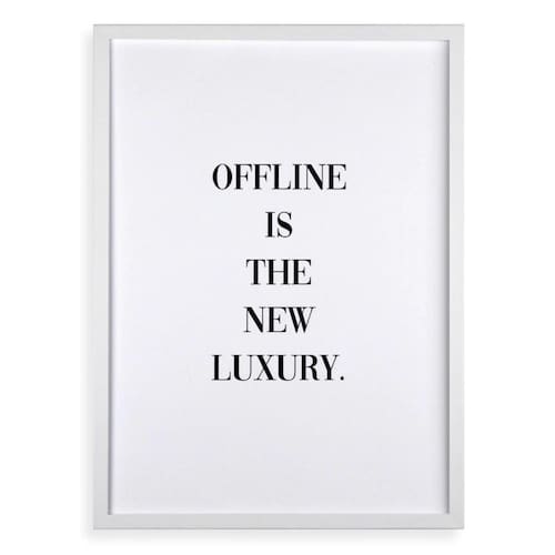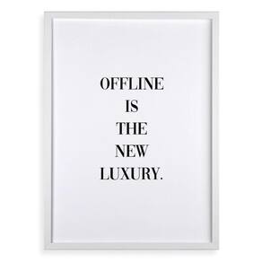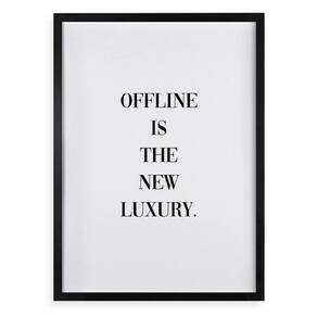 Quadro offline is the new luxury 45x34cm - com vidro Cor: moldura branca Informações do produto tire todas as suas dúvidas no descritivo abaixo: decoração para quarto, sala, cozinha, escritório, área gourmet e muito mais. Chega de paredes vazias medidas - cada peça tem 45x34cm a3 . Material do papel - papel fotográfico brilhante de altíssima resolução acabamento - todos os quadros são acompanhados de vidro para proteção da imagem. - moldura em madeira maciça na cor preta ou branca conforme produto escolhido e pendurador . - os quadros são embalados de forma segura com plástico bolha com camada dupla de acordo com o tamanho dos quadros. - de 3 meses. Meu quadro chegou. Como posso fixá-lo Você precisa apenas de um martelo e um prego, pois os quadros já vão acompanhados de penduradores. Esta é a forma mais indicada. Como posso limpar meu quadro A limpeza é feita como um móvel comum da sua casa. Apenas um pano seco ou espanador são suficientes para tal