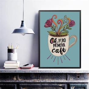 Quadro ok pero primeiro café 33x24cm - com vidro Moldura: madeira preta Informações do produto tire todas as suas dúvidas no descritivo abaixo: decoração para quarto, sala, cozinha, escritório, área gourmet e muito mais. Chega de paredes vazias medidas - cada peça tem 33x24cm a4 . Material do papel - papel fotográfico brilhante de altíssima resolução acabamento - todos os quadros são acompanhados de vidro para proteção da imagem. - moldura em madeira maciça na cor preta ou branca conforme produto escolhido e pendurador . - os quadros são embalados de forma segura com plástico bolha com camada dupla de acordo com o tamanho dos quadros. Garantia - garantia de 3 meses. Meu quadro chegou. Como posso fixá-lo Você precisa apenas de um martelo e um prego, pois os quadros já vão acompanhados de penduradores. Esta é a forma mais indicada. Como posso limpar meu quadro A limpeza é feita como um móvel comum da sua casa. Apenas um pano seco ou espanador são suficientes para tal