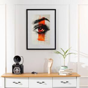 Quadro olho abstrato - 60x48cm Cor: moldura branca Informações do produto tire todas as suas dúvidas no descritivo abaixo: decoração para quarto, sala, cozinha, escritório, área gourmet e muito mais. Chega de paredes vazias medidas - cada peça tem 60x48cm . Material do papel - papel fotográfico brilhante de altíssima resolução acabamento - todos os quadros são acompanhados de vidro para proteção da imagem. - moldura em madeira maciça na cor preta ou branca conforme produto escolhido e pendurador. - paspatur branco com 7cm de largura - os quadros são embalados de forma segura com plástico bolha com camada dupla de acordo com o tamanho dos quadros. Garantia - garantia de 3 meses. Meu quadro chegou. Como posso fixá-lo Você precisa apenas de um martelo e um prego, pois os quadros já vão acompanhados de penduradores. Esta é a forma mais indicada. Como posso limpar meu quadro A limpeza é feita como um móvel comum da sua casa. Apenas um pano seco ou espanador são suficientes para tal Ean: 7891234555182