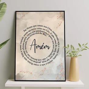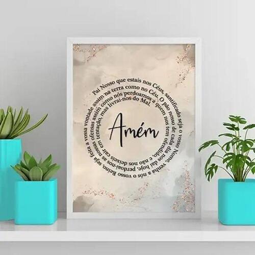 Quadro oração pai nosso - mármore bege e dourado 45x34cm Moldura: madeira preta Informações do produto tire todas as suas dúvidas no descritivo abaixo: decoração para quarto, sala, cozinha, escritório, área gourmet e muito mais. Chega de paredes vazias. Medidas - cada peça tem 45x34cm a3 . Material do papel - papel fotográfico brilhante de altíssima resolução acabamento - todos os quadros são acompanhados de uma película de acetato para proteção da imagem. - os quadros são embalados de forma segura com plástico bolha com camada dupla de acordo com o tamanho dos quadros. Garantia - garantia de 3 meses. Meu quadro chegou. Como posso fixá-lo Você precisa apenas de um martelo e um prego, pois os quadros já vão acompanhados de penduradores. Esta é a forma mais indicada. Caso prefira, você pode utilizar uma fita dupla face neste caso, sugerimos de alta qualidade para evitar que descole e seu quadro caia . Como posso limpar meu quadro A limpeza é feita como um móvel comum da sua casa. Apenas um pano seco ou espanador são suficientes para tal Ean: 7897089067207