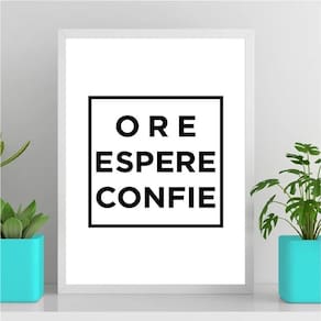 Quadro ore espere confie 33x24cm - com vidro Moldura: madeira preta Informações do produto tire todas as suas dúvidas no descritivo abaixo: decoração para quarto, sala, cozinha, escritório, área gourmet e muito mais. Chega de paredes vazias medidas - cada peça tem 33x24cm a4 . Material do papel - papel fotográfico brilhante de altíssima resolução acabamento - todos os quadros são acompanhados de vidro para proteção da imagem. - moldura em madeira maciça na cor preta e pendurador . - os quadros são embalados de forma segura com plástico bolha com camada dupla de acordo com o tamanho dos quadros. Garantia - garantia de 3 meses. Meu quadro chegou. Como posso fixá-lo Você precisa apenas de um martelo e um prego, pois os quadros já vão acompanhados de penduradores. Esta é a forma mais indicada. Como posso limpar meu quadro A limpeza é feita como um móvel comum da sua casa. Apenas um pano seco ou espanador são suficientes para tal