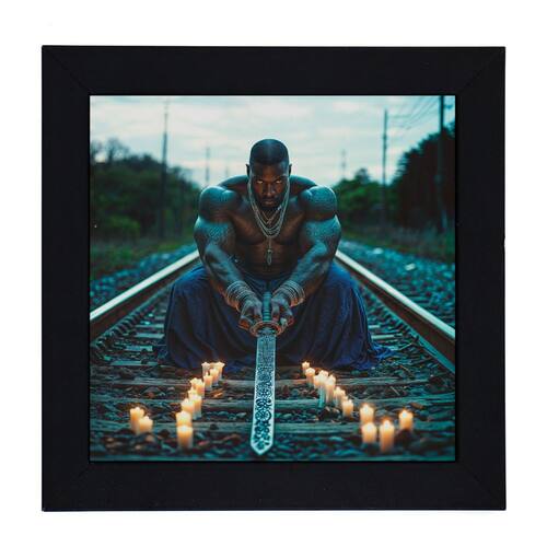 Conecte-se com a energia do Orixá Ogum, o grande guerreiro, senhor do ferro, das batalhas e da tecnologia. Este quadro traz a imagem do Orixá que representa a força, a coragem e a proteção, trazendo uma presença imponente e poderosa para qualquer ambiente. Ideal para quem busca inspiração, superação e um símbolo de proteção e abertura de caminhos.