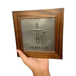 Quadro Orixá Oxóssi Em Aço e Madeira Imbuia 18 x18 cm Encante seu espaço com a energia da natureza e da caça representada por Oxóssi, o Orixá das matas e das florestas, neste belíssimo quadro artesanal.