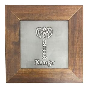 Quadro Orixá Xangô em Madeira e Metal - Escolha a Cor Cor: Machado Imbuia 14,5x14,5cm Quadro Xangô Ayra Orixá Madeira Carvalho e Metal 13 x13 cm