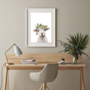 Quadro ovelha baby - 60x48cm Moldura: madeira preta Informações do produto tire todas as suas dúvidas no descritivo abaixo: decoração para quarto, sala, cozinha, escritório, área gourmet e muito mais. Chega de paredes vazias medidas - cada peça tem 60x48cm . Material do papel - papel fotográfico brilhante de altíssima resolução acabamento - todos os quadros são acompanhados de vidro para proteção da imagem. - moldura em madeira maciça na cor preta ou branca conforme produto escolhido e pendurador. - paspatur branco com 7cm de largura - os quadros são embalados de forma segura com plástico bolha com camada dupla de acordo com o tamanho dos quadros. Garantia - garantia de 3 meses. Meu quadro chegou. Como posso fixá-lo Você precisa apenas de um martelo e um prego, pois os quadros já vão acompanhados de penduradores. Esta é a forma mais indicada. Como posso limpar meu quadro A limpeza é feita como um móvel comum da sua casa. Apenas um pano seco ou espanador são suficientes para tal