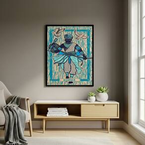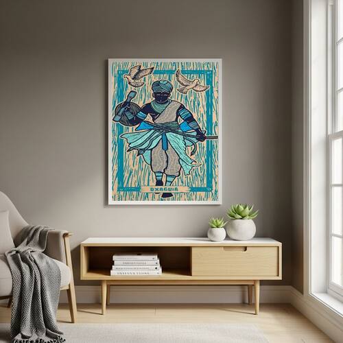 Quadro Oxaguiã Manifestação do Orixá Oxalá - 70x50cm - Cor: Moldura Preta