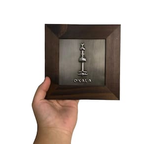 Quadro Oxalá Orixá Madeira Imbuia e Metal 14,5x14,5cm