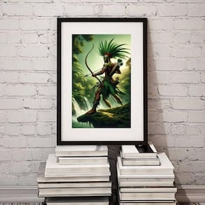 Quadro oxóssi guerreiro - 60x48cm Moldura: madeira preta Informações do produto tire todas as suas dúvidas no descritivo abaixo: decoração para quarto, sala, cozinha, escritório, área gourmet e muito mais. Chega de paredes vazias medidas - cada peça tem 60x48cm . Material do papel - papel fotográfico brilhante de altíssima resolução acabamento - todos os quadros são acompanhados de vidro para proteção da imagem. - moldura em madeira maciça na cor preta ou branca conforme produto escolhido e pendurador. - paspatur branco com 7cm de largura - os quadros são embalados de forma segura com plástico bolha com camada dupla de acordo com o tamanho dos quadros. Garantia - garantia de 3 meses. Meu quadro chegou. Como posso fixá-lo Você precisa apenas de um martelo e um prego, pois os quadros já vão acompanhados de penduradores. Esta é a forma mais indicada. Como posso limpar meu quadro A limpeza é feita como um móvel comum da sua casa. Apenas um pano seco ou espanador são suficientes para tal