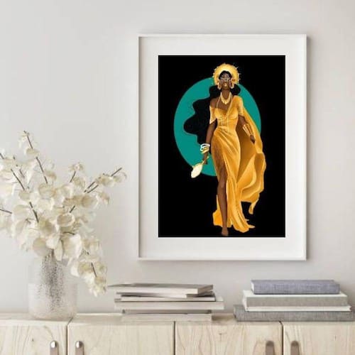 Quadro oxum silhueta - 60x48cm Moldura: madeira preta Informações do produto tire todas as suas dúvidas no descritivo abaixo: decoração para quarto, sala, cozinha, escritório, área gourmet e muito mais. Chega de paredes vazias medidas - cada peça tem 60x48cm . Material do papel - papel fotográfico brilhante de altíssima resolução acabamento - todos os quadros são acompanhados de vidro para proteção da imagem. - moldura em madeira maciça na cor preta ou branca conforme produto escolhido e pendurador. - paspatur branco com 7cm de largura - os quadros são embalados de forma segura com plástico bolha com camada dupla de acordo com o tamanho dos quadros. Garantia - garantia de 3 meses. Meu quadro chegou. Como posso fixá-lo Você precisa apenas de um martelo e um prego, pois os quadros já vão acompanhados de penduradores. Esta é a forma mais indicada. Como posso limpar meu quadro A limpeza é feita como um móvel comum da sua casa. Apenas um pano seco ou espanador são suficientes para tal