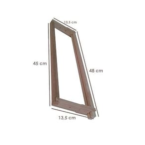• Medidas: Vareta superior= Comprimento 0,48 cm Largura. 2,5 cm Espessura 1,2 cm Vareta Inferior= Comprimento 0,45 cm Largura 2 cm Espessura 1,2 cm Peças Laterais= Comprimento. 13,5 cm Largura 3,5 cm Espessura 1,2 cm - Há um corte nas cabeceiras, de 15mm de largura por 12mm de profundidade para o encaixa das varetas superiores e inferiores.