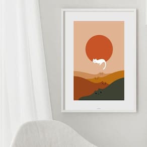 Quadro paisagem boho gatinhos - 60x48cm Moldura: madeira preta Informações do produto tire todas as suas dúvidas no descritivo abaixo: decoração para quarto, sala, cozinha, escritório, área gourmet e muito mais. Chega de paredes vazias medidas - cada peça tem 60x48cm . Material do papel - papel fotográfico brilhante de altíssima resolução acabamento - todos os quadros são acompanhados de vidro para proteção da imagem. - moldura em madeira maciça na cor preta ou branca conforme produto escolhido e pendurador. - paspatur branco com 7cm de largura - os quadros são embalados de forma segura com plástico bolha com camada dupla de acordo com o tamanho dos quadros. Garantia - garantia de 3 meses. Meu quadro chegou. Como posso fixá-lo Você precisa apenas de um martelo e um prego, pois os quadros já vão acompanhados de penduradores. Esta é a forma mais indicada. Como posso limpar meu quadro A limpeza é feita como um móvel comum da sua casa. Apenas um pano seco ou espanador são suficientes para tal