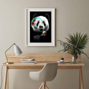 Quadro panda bola de sabão - 60x48cm Moldura: madeira branca Informações do produto tire todas as suas dúvidas no descritivo abaixo: decoração para quarto, sala, cozinha, escritório, área gourmet e muito mais. Chega de paredes vazias medidas - cada peça tem 60x48cm . Material do papel - papel fotográfico brilhante de altíssima resolução acabamento - todos os quadros são acompanhados de vidro para proteção da imagem. - moldura em madeira maciça na cor preta ou branca conforme produto escolhido e pendurador. - paspatur branco com 7cm de largura - os quadros são embalados de forma segura com plástico bolha com camada dupla de acordo com o tamanho dos quadros. Garantia - garantia de 3 meses. Meu quadro chegou. Como posso fixá-lo Você precisa apenas de um martelo e um prego, pois os quadros já vão acompanhados de penduradores. Esta é a forma mais indicada. Como posso limpar meu quadro A limpeza é feita como um móvel comum da sua casa. Apenas um pano seco ou espanador são suficientes para tal