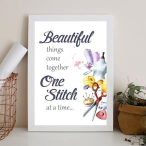 Quadro para atelier de costura - frase 33x24cm Moldura: madeira branca Informações do produto tire todas as suas dúvidas no descritivo abaixo: decoração para quarto, sala, cozinha, escritório, área gourmet e muito mais. Chega de paredes vazias medidas - cada peça tem 33x24cm a4 . Material do papel - papel fotográfico brilhante de altíssima resolução acabamento - todos os quadros são acompanhados de uma película de acetato para proteção da imagem. - os quadros são embalados de forma segura com plástico bolha com camada dupla de acordo com o tamanho dos quadros. - de 3 meses. Meu quadro chegou. Como posso fixá-lo Você precisa apenas de um martelo e um prego, pois os quadros já vão acompanhados de penduradores. Esta é a forma mais indicada. Caso prefira, você pode utilizar uma fita dupla face neste caso, sugerimos de alta qualidade para evitar que descole e seu quadro caia . Como posso limpar meu quadro A limpeza é feita como um móvel comum da sua casa. Apenas um pano seco ou espanador são suficientes para tal Marca: Não Informado Ean: 7899960437550
