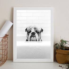 Quadro para banheiro bulldog na banheira 45x34cm Moldura: madeira preta Informações do produto tire todas as suas dúvidas no descritivo abaixo: decoração para quarto, sala, cozinha, escritório, área gourmet e muito mais. Chega de paredes vazias. Medidas - cada peça tem 45x34cm a3 . Material do papel - papel fotográfico brilhante de altíssima resolução acabamento - todos os quadros são acompanhados de uma película de acetato para proteção da imagem. - os quadros são embalados de forma segura com plástico bolha com camada dupla de acordo com o tamanho dos quadros. Garantia - garantia de 3 meses. Meu quadro chegou. Como posso fixá-lo Você precisa apenas de um martelo e um prego, pois os quadros já vão acompanhados de penduradores. Esta é a forma mais indicada. Caso prefira, você pode utilizar uma fita dupla face neste caso, sugerimos de alta qualidade para evitar que descole e seu quadro caia . Como posso limpar meu quadro A limpeza é feita como um móvel comum da sua casa. Apenas um pano seco ou espanador são suficientes para tal Ean: 7897420518030