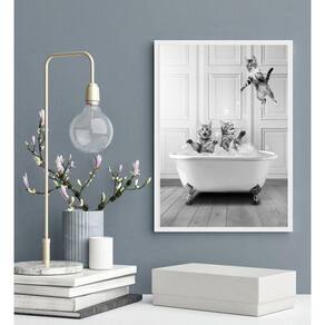 Quadro para banheiro gatinhos na banheira 33x24cm Moldura: madeira branca Informações do produto tire todas as suas dúvidas no descritivo abaixo: decoração para quarto, sala, cozinha, escritório, área gourmet e muito mais. Chega de paredes vazias medidas - cada peça tem 33x24cm a4 . Material do papel - papel fotográfico brilhante de altíssima resolução acabamento - todos os quadros são acompanhados de uma película de acetato para proteção da imagem. - os quadros são embalados de forma segura com plástico bolha com camada dupla de acordo com o tamanho dos quadros. Garantia - garantia de 3 meses. Meu quadro chegou. Como posso fixá-lo Você precisa apenas de um martelo e um prego, pois os quadros já vão acompanhados de penduradores. Esta é a forma mais indicada. Caso prefira, você pode utilizar uma fita dupla face neste caso, sugerimos de alta qualidade para evitar que descole e seu quadro caia . Como posso limpar meu quadro A limpeza é feita como um móvel comum da sua casa. Apenas um pano seco ou espanador são suficientes para tal Ean: 7893403197803