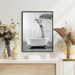 Quadro para banheiro - girafas na banheira 24x18cm Moldura: madeira branca Informações do produto tire todas as suas dúvidas no descritivo abaixo: decoração para quarto, sala, cozinha, escritório, área gourmet e muito mais. Chega de paredes vazias medidas - cada peça tem 24x18cm a5 . Material do papel - papel fotográfico brilhante de altíssima resolução acabamento - todos os quadros são acompanhados de uma película de acetato para proteção da imagem. - os quadros são embalados de forma segura com plástico bolha com camada dupla de acordo com o tamanho dos quadros. - de 3 meses. Meu quadro chegou. Como posso fixá-lo Você precisa apenas de um martelo e um prego, pois os quadros já vão acompanhados de penduradores. Esta é a forma mais indicada. Caso prefira, você pode utilizar uma fita dupla face neste caso, sugerimos de alta qualidade para evitar que descole e seu quadro caia . Como posso limpar meu quadro A limpeza é feita como um móvel comum da sua casa. Apenas um pano seco ou espanador são suficientes para tal Marca: Não Informado