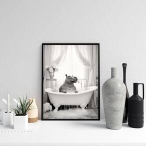 Quadro para banheiro hipopótamo no banho 45x34cm Cor: moldura preta Informações do produto tire todas as suas dúvidas no descritivo abaixo: decoração para quarto, sala, cozinha, escritório, área gourmet e muito mais. Chega de paredes vazias. Medidas - cada peça tem 45x34cm a3 . Material do papel - papel fotográfico brilhante de altíssima resolução acabamento - todos os quadros são acompanhados de uma película de acetato para proteção da imagem. - os quadros são embalados de forma segura com plástico bolha com camada dupla de acordo com o tamanho dos quadros. Garantia - garantia de 3 meses. Meu quadro chegou. Como posso fixá-lo Você precisa apenas de um martelo e um prego, pois os quadros já vão acompanhados de penduradores. Esta é a forma mais indicada. Caso prefira, você pode utilizar uma fita dupla face neste caso, sugerimos de alta qualidade para evitar que descole e seu quadro caia . Como posso limpar meu quadro A limpeza é feita como um móvel comum da sua casa. Apenas um pano seco ou espanador são suficientes para tal