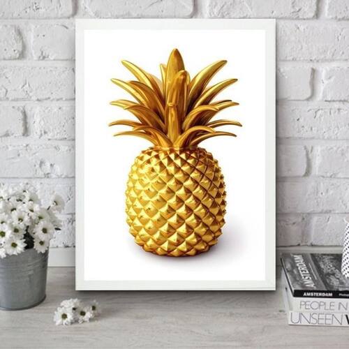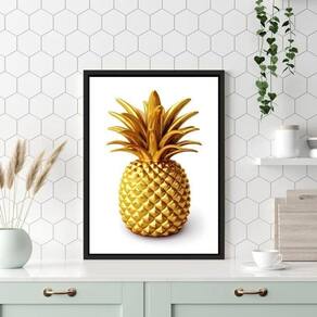 Quadro para cozinha abacaxi dourado 24x18cm - com vidro