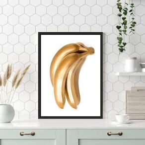Quadro para cozinha banana dourada 24x18cm - com vidro Cor: moldura preta Informações do produto tire todas as suas dúvidas no descritivo abaixo: decoração para quarto, sala, cozinha, escritório, área gourmet e muito mais. Chega de paredes vazias medidas - cada peça tem 24x18cm a5 . Material do papel - papel fotográfico brilhante de altíssima resolução acabamento - todos os quadros são acompanhados de vidro para proteção da imagem. - moldura em madeira maciça na cor preta ou branca conforme produto escolhido e pendurador . - os quadros são embalados de forma segura com plástico bolha com camada dupla de acordo com o tamanho dos quadros. Garantia - garantia de 3 meses. Meu quadro chegou. Como posso fixá-lo Você precisa apenas de um martelo e um prego, pois os quadros já vão acompanhados de penduradores. Esta é a forma mais indicada. Como posso limpar meu quadro A limpeza é feita como um móvel comum da sua casa. Apenas um pano seco ou espanador são suficientes para tal