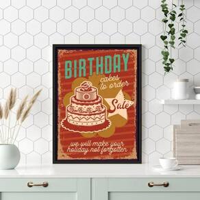 Quadro para cozinha bolo de aniversário 45x34cm Cor: moldura branca Informações do produto tire todas as suas dúvidas no descritivo abaixo: decoração para quarto, sala, cozinha, escritório, área gourmet e muito mais. Chega de paredes vazias. Medidas - cada peça tem 45x34cm a3 . Material do papel - papel fotográfico brilhante de altíssima resolução acabamento - todos os quadros são acompanhados de uma película de acetato para proteção da imagem. - os quadros são embalados de forma segura com plástico bolha com camada dupla de acordo com o tamanho dos quadros. Garantia - garantia de 3 meses. Meu quadro chegou. Como posso fixá-lo Você precisa apenas de um martelo e um prego, pois os quadros já vão acompanhados de penduradores. Esta é a forma mais indicada. Caso prefira, você pode utilizar uma fita dupla face neste caso, sugerimos de alta qualidade para evitar que descole e seu quadro caia . Como posso limpar meu quadro A limpeza é feita como um móvel comum da sua casa. Apenas um pano seco ou espanador são suficientes para tal