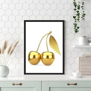 Quadro para cozinha cereja dourada 24x18cm Cor: moldura branca Informações do produto tire todas as suas dúvidas no descritivo abaixo: decoração para quarto, sala, cozinha, escritório, área gourmet e muito mais. Chega de paredes vazias medidas - cada peça tem 24x18cm a5 . Material do papel - papel fotográfico brilhante de altíssima resolução acabamento - todos os quadros são acompanhados de uma película de acetato para proteção da imagem. - os quadros são embalados de forma segura com plástico bolha com camada dupla de acordo com o tamanho dos quadros. Garantia - garantia de 3 meses. Meu quadro chegou. Como posso fixá-lo Você precisa apenas de um martelo e um prego, pois os quadros já vão acompanhados de penduradores. Esta é a forma mais indicada. Caso prefira, você pode utilizar uma fita dupla face neste caso, sugerimos de alta qualidade para evitar que descole e seu quadro caia . Como posso limpar meu quadro A limpeza é feita como um móvel comum da sua casa. Apenas um pano seco ou espanador são suficientes para tal