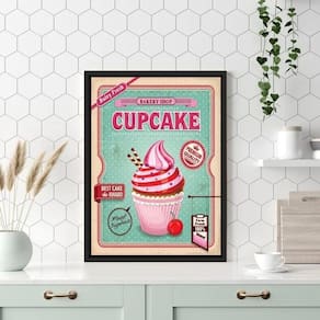 Quadro para cozinha cupcake rosa 33x24cm - com vidro Cor: moldura branca Informações do produto tire todas as suas dúvidas no descritivo abaixo: decoração para quarto, sala, cozinha, escritório, área gourmet e muito mais. Chega de paredes vazias medidas - cada peça tem 33x24cm a4 . Material do papel - papel fotográfico brilhante de altíssima resolução acabamento - todos os quadros são acompanhados de vidro para proteção da imagem. - moldura em madeira maciça na cor preta ou branca conforme produto escolhido e pendurador . - os quadros são embalados de forma segura com plástico bolha com camada dupla de acordo com o tamanho dos quadros. Garantia - garantia de 3 meses. Meu quadro chegou. Como posso fixá-lo Você precisa apenas de um martelo e um prego, pois os quadros já vão acompanhados de penduradores. Esta é a forma mais indicada. Como posso limpar meu quadro A limpeza é feita como um móvel comum da sua casa. Apenas um pano seco ou espanador são suficientes para tal