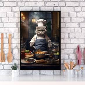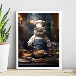 Quadro para cozinha gato cozinheiro 24x18cm - com vidro Moldura: madeira preta Informações do produto tire todas as suas dúvidas no descritivo abaixo: decoração para quarto, sala, cozinha, escritório, área gourmet e muito mais. Chega de paredes vazias medidas - cada peça tem 24x18cm a5 . Material do papel - papel fotográfico brilhante de altíssima resolução acabamento - todos os quadros são acompanhados de vidro para proteção da imagem. - moldura em madeira maciça na cor preta ou branca conforme produto escolhido e pendurador . - os quadros são embalados de forma segura com plástico bolha com camada dupla de acordo com o tamanho dos quadros. Garantia - garantia de 3 meses. Meu quadro chegou. Como posso fixá-lo Você precisa apenas de um martelo e um prego, pois os quadros já vão acompanhados de penduradores. Esta é a forma mais indicada. Como posso limpar meu quadro A limpeza é feita como um móvel comum da sua casa. Apenas um pano seco ou espanador são suficientes para tal Ean: 7897823444097