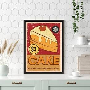 Quadro para cozinha vintage - bolo 33x24cm Cor: moldura preta Informações do produto tire todas as suas dúvidas no descritivo abaixo: decoração para quarto, sala, cozinha, escritório, área gourmet e muito mais. Chega de paredes vazias medidas - cada peça tem 33x24cm a4 . Material do papel - papel fotográfico brilhante de altíssima resolução acabamento - todos os quadros são acompanhados de uma película de acetato para proteção da imagem. - os quadros são embalados de forma segura com plástico bolha com camada dupla de acordo com o tamanho dos quadros. Garantia - garantia de 3 meses. Meu quadro chegou. Como posso fixá-lo Você precisa apenas de um martelo e um prego, pois os quadros já vão acompanhados de penduradores. Esta é a forma mais indicada. Caso prefira, você pode utilizar uma fita dupla face neste caso, sugerimos de alta qualidade para evitar que descole e seu quadro caia . Como posso limpar meu quadro A limpeza é feita como um móvel comum da sua casa. Apenas um pano seco ou espanador são suficientes para tal