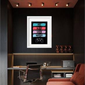 Quadro para quarto gamer - 60x48cm Moldura: madeira preta Informações do produto tire todas as suas dúvidas no descritivo abaixo: decoração para quarto, sala, cozinha, escritório, área gourmet e muito mais. Chega de paredes vazias medidas - cada peça tem 60x48cm . Material do papel - papel fotográfico brilhante de altíssima resolução acabamento - todos os quadros são acompanhados de vidro para proteção da imagem. - moldura em madeira maciça na cor preta ou branca conforme produto escolhido e pendurador. - paspatur branco com 7cm de largura - os quadros são embalados de forma segura com plástico bolha com camada dupla de acordo com o tamanho dos quadros. Garantia - garantia de 3 meses. Meu quadro chegou. Como posso fixá-lo Você precisa apenas de um martelo e um prego, pois os quadros já vão acompanhados de penduradores. Esta é a forma mais indicada. Como posso limpar meu quadro A limpeza é feita como um móvel comum da sua casa. Apenas um pano seco ou espanador são suficientes para tal