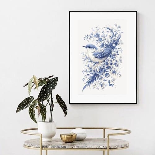 Quadro passarinho azul floral - 60x48cm Cor: moldura preta Informações do produto tire todas as suas dúvidas no descritivo abaixo: decoração para quarto, sala, cozinha, escritório, área gourmet e muito mais. Chega de paredes vazias medidas - cada peça tem 60x48cm . Material do papel - papel fotográfico brilhante de altíssima resolução acabamento - todos os quadros são acompanhados de vidro para proteção da imagem. - moldura em madeira maciça na cor preta ou branca conforme produto escolhido e pendurador. - paspatur branco com 7cm de largura - os quadros são embalados de forma segura com plástico bolha com camada dupla de acordo com o tamanho dos quadros. Garantia - garantia de 3 meses. Meu quadro chegou. Como posso fixá-lo Você precisa apenas de um martelo e um prego, pois os quadros já vão acompanhados de penduradores. Esta é a forma mais indicada. Como posso limpar meu quadro A limpeza é feita como um móvel comum da sua casa. Apenas um pano seco ou espanador são suficientes para tal