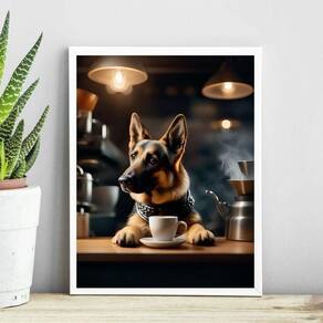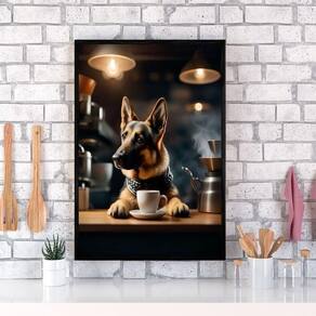Quadro Pastor Alemão Tomando Café 24X18Cm