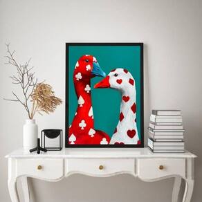 Quadro patinhos naipes carta de baralho 33x24cm - com vidro Cor: moldura branca Informações do produto tire todas as suas dúvidas no descritivo abaixo: decoração para quarto, sala, cozinha, escritório, área gourmet e muito mais. Chega de paredes vazias medidas - cada peça tem 33x24cm a4 . Material do papel - papel fotográfico brilhante de altíssima resolução acabamento - todos os quadros são acompanhados de vidro para proteção da imagem. - moldura em madeira maciça na cor preta ou branca conforme produto escolhido e pendurador . - os quadros são embalados de forma segura com plástico bolha com camada dupla de acordo com o tamanho dos quadros. - de 3 meses. Meu quadro chegou. Como posso fixá-lo Você precisa apenas de um martelo e um prego, pois os quadros já vão acompanhados de penduradores. Esta é a forma mais indicada. Como posso limpar meu quadro A limpeza é feita como um móvel comum da sua casa. Apenas um pano seco ou espanador são suficientes para tal