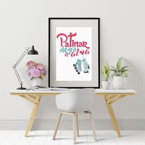 Quadro patins frase - 60x48cm Moldura: madeira branca Informações do produto tire todas as suas dúvidas no descritivo abaixo: decoração para quarto, sala, cozinha, escritório, área gourmet e muito mais. Chega de paredes vazias medidas - cada peça tem 60x48cm . Material do papel - papel fotográfico brilhante de altíssima resolução acabamento - todos os quadros são acompanhados de vidro para proteção da imagem. - moldura em madeira maciça na cor preta ou branca conforme produto escolhido e pendurador. - paspatur branco com 7cm de largura - os quadros são embalados de forma segura com plástico bolha com camada dupla de acordo com o tamanho dos quadros. - de 3 meses. Meu quadro chegou. Como posso fixá-lo Você precisa apenas de um martelo e um prego, pois os quadros já vão acompanhados de penduradores. Esta é a forma mais indicada. Como posso limpar meu quadro A limpeza é feita como um móvel comum da sua casa. Apenas um pano seco ou espanador são suficientes para tal Marca: Não Informado
