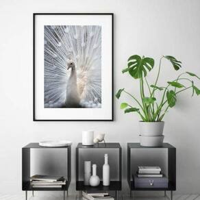 Quadro pavão branco - 60x48cm Moldura: madeira preta Informações do produto tire todas as suas dúvidas no descritivo abaixo: decoração para quarto, sala, cozinha, escritório, área gourmet e muito mais. Chega de paredes vazias medidas - cada peça tem 60x48cm . Material do papel - papel fotográfico brilhante de altíssima resolução acabamento - todos os quadros são acompanhados de vidro para proteção da imagem. - moldura em madeira maciça na cor preta ou branca conforme produto escolhido e pendurador. - paspatur branco com 7cm de largura - os quadros são embalados de forma segura com plástico bolha com camada dupla de acordo com o tamanho dos quadros. Garantia - garantia de 3 meses. Meu quadro chegou. Como posso fixá-lo Você precisa apenas de um martelo e um prego, pois os quadros já vão acompanhados de penduradores. Esta é a forma mais indicada. Como posso limpar meu quadro A limpeza é feita como um móvel comum da sua casa. Apenas um pano seco ou espanador são suficientes para tal