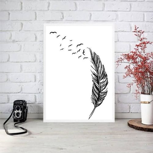 Quadro Pena Pássaros Voando 24X18Cm Moldura Branca