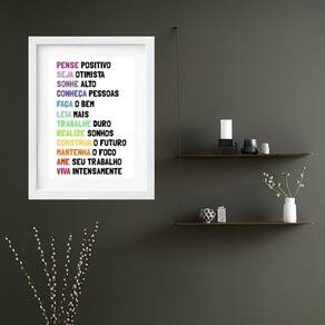 Quadro pense positivo - 60x48cm Moldura: madeira preta Informações do produto tire todas as suas dúvidas no descritivo abaixo: decoração para quarto, sala, cozinha, escritório, área gourmet e muito mais. Chega de paredes vazias medidas - cada peça tem 60x48cm . Material do papel - papel fotográfico brilhante de altíssima resolução acabamento - todos os quadros são acompanhados de vidro para proteção da imagem. - moldura em madeira maciça na cor preta ou branca conforme produto escolhido e pendurador. - paspatur branco com 7cm de largura - os quadros são embalados de forma segura com plástico bolha com camada dupla de acordo com o tamanho dos quadros. Garantia - garantia de 3 meses. Meu quadro chegou. Como posso fixá-lo Você precisa apenas de um martelo e um prego, pois os quadros já vão acompanhados de penduradores. Esta é a forma mais indicada. Como posso limpar meu quadro A limpeza é feita como um móvel comum da sua casa. Apenas um pano seco ou espanador são suficientes para tal