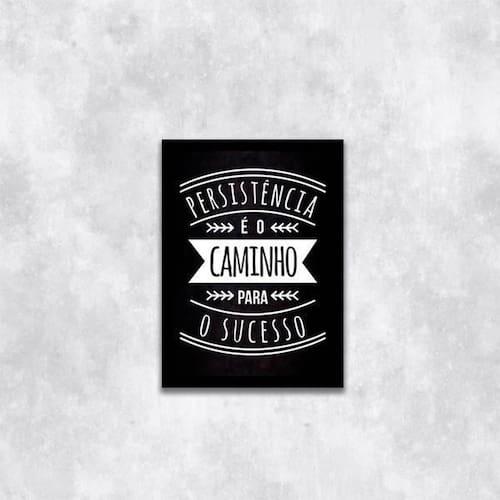 Quadro persistência é o caminho pro sucesso 33x24cm - com vidro Moldura: madeira preta Informações do produto tire todas as suas dúvidas no descritivo abaixo: decoração para quarto, sala, cozinha, escritório, área gourmet e muito mais. Chega de paredes vazias medidas - cada peça tem 33x24cm a4 . Material do papel - papel fotográfico brilhante de altíssima resolução acabamento - todos os quadros são acompanhados de vidro para proteção da imagem. - moldura em madeira maciça na cor preta e pendurador . - os quadros são embalados de forma segura com plástico bolha com camada dupla de acordo com o tamanho dos quadros. - de 3 meses. Meu quadro chegou. Como posso fixá-lo Você precisa apenas de um martelo e um prego, pois os quadros já vão acompanhados de penduradores. Esta é a forma mais indicada. Como posso limpar meu quadro A limpeza é feita como um móvel comum da sua casa. Apenas um pano seco ou espanador são suficientes para tal Marca: Não Informado Ean: 7895142226844