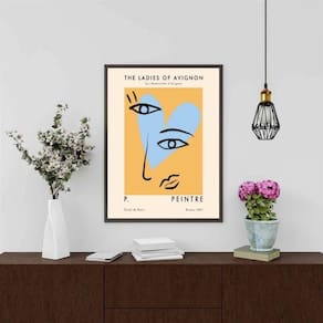 Quadro picasso coração azul e amarelo 33x24cm - com vidro Cor: moldura preta Informações do produto tire todas as suas dúvidas no descritivo abaixo: decoração para quarto, sala, cozinha, escritório, área gourmet e muito mais. Chega de paredes vazias medidas - cada peça tem 33x24cm a4 . Material do papel - papel fotográfico brilhante de altíssima resolução acabamento - todos os quadros são acompanhados de vidro para proteção da imagem. - moldura em madeira maciça na cor preta ou branca conforme produto escolhido e pendurador . - os quadros são embalados de forma segura com plástico bolha com camada dupla de acordo com o tamanho dos quadros. Garantia - garantia de 3 meses. Meu quadro chegou. Como posso fixá-lo Você precisa apenas de um martelo e um prego, pois os quadros já vão acompanhados de penduradores. Esta é a forma mais indicada. Como posso limpar meu quadro A limpeza é feita como um móvel comum da sua casa. Apenas um pano seco ou espanador são suficientes para tal