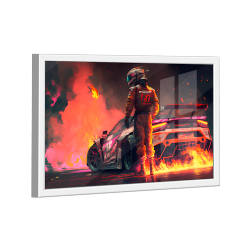 Quadro Piloto Fire -- BR ARTES Moldura Branca e Vidro - Grande 118x78 -