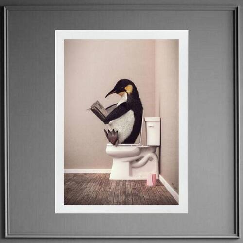 Quadro pinguim no banheiro lendo jornal 33x24cm Moldura: madeira branca Informações do produto tire todas as suas dúvidas no descritivo abaixo: decoração para quarto, sala, cozinha, escritório, área gourmet e muito mais. Chega de paredes vazias medidas - cada peça tem 33x24cm a4 . Material do papel - papel fotográfico brilhante de altíssima resolução acabamento - todos os quadros são acompanhados de uma película de acetato para proteção da imagem. - moldura em madeira maciça na cor preta ou branca conforme produto escolhido e pendurador móvel que pode ser retirado facilmente caso deseje fixar com fita dupla face. - os quadros são embalados de forma segura com plástico bolha com camada dupla de acordo com o tamanho dos quadros. Garantia - garantia de 3 meses. Meu quadro chegou. Como posso fixá-lo Você precisa apenas de um martelo e um prego, pois os quadros já vão acompanhados de penduradores. Esta é a forma mais indicada. Caso prefira, você pode utilizar uma fita dupla face neste caso, sugerimos de alta qualidade para evitar que descole e seu quadro caia . Como posso limpar meu quadro A limpeza é feita como um móvel comum da sua casa. Apenas um pano seco ou espanador são suficientes para tal