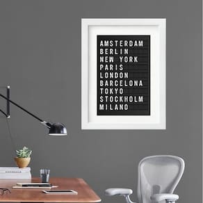 Quadro placa de aeroporto cidades - 60x48cm Moldura: madeira branca Informações do produto tire todas as suas dúvidas no descritivo abaixo: decoração para quarto, sala, cozinha, escritório, área gourmet e muito mais. Chega de paredes vazias medidas - cada peça tem 60x48cm . Material do papel - papel fotográfico brilhante de altíssima resolução acabamento - todos os quadros são acompanhados de vidro para proteção da imagem. - moldura em madeira maciça na cor preta ou branca conforme produto escolhido e pendurador. - paspatur branco com 7cm de largura - os quadros são embalados de forma segura com plástico bolha com camada dupla de acordo com o tamanho dos quadros. - de 3 meses. Meu quadro chegou. Como posso fixá-lo Você precisa apenas de um martelo e um prego, pois os quadros já vão acompanhados de penduradores. Esta é a forma mais indicada. Como posso limpar meu quadro A limpeza é feita como um móvel comum da sua casa. Apenas um pano seco ou espanador são suficientes para tal