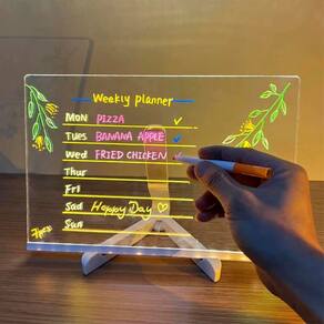 A Placa Luminária LED com Marcador permite desenhar, escrever frases, deixar recados, personalizar mensagens e criar efeitos incríveis com iluminação