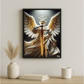Quadro Poderoso São Miguel Arcanjo 24x18cm - com vidro - Cor: Moldura branca
